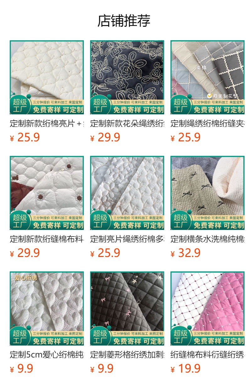 绗缝棉布料绣花面料衍缝绗绣爱心绗棉化妆包文具盒痛包服装面料