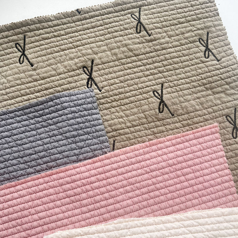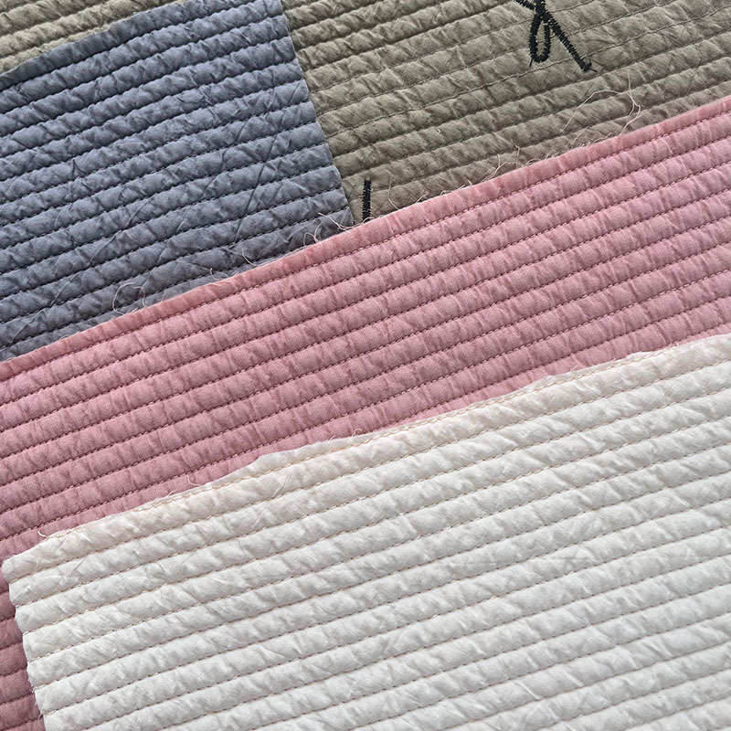 定制横条水洗棉纯棉绗缝夹棉包面料衍缝棉布料绗缝加工源头工厂