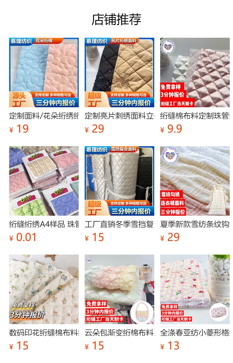 • 绗绣棉裥棉绗缝绣花面料5cm葫芦花夹棉布云朵服装 提花面料