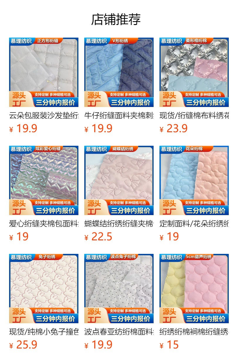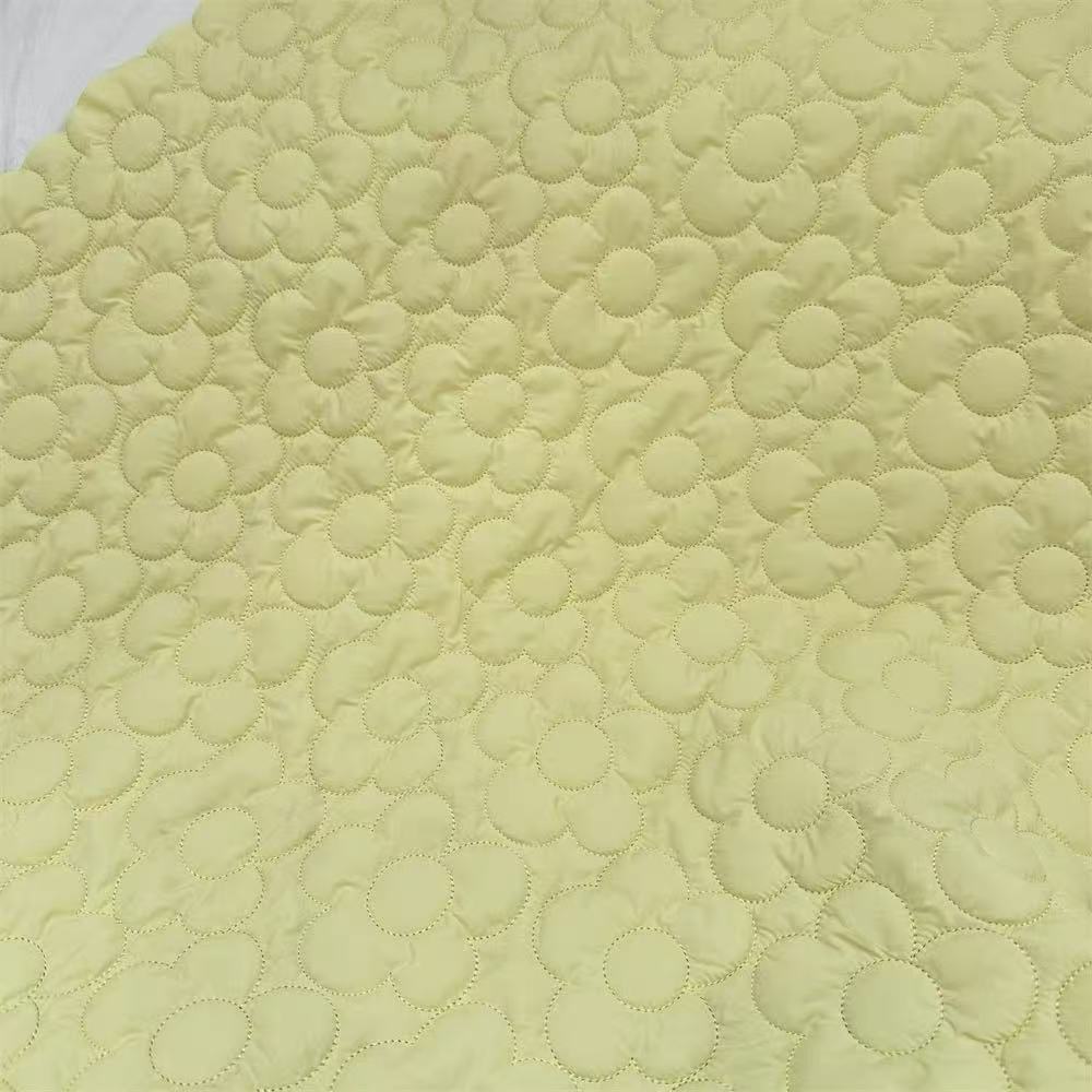 花朵绗缝面料云朵包绗缝夹棉布全涤布绣花面料绗绣加工宠物服装