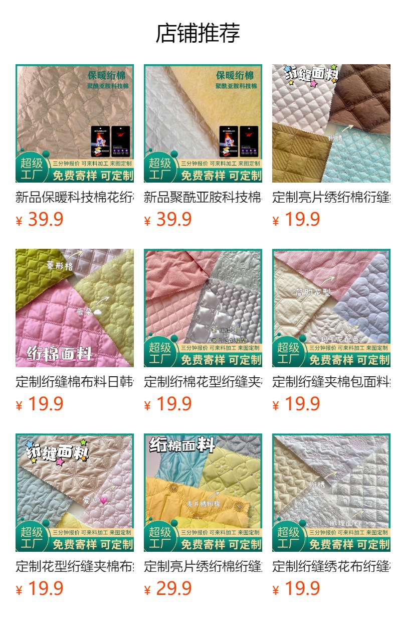 定制保暖科技棉男装夹克户外运动服面料绗缝夹棉面料聚酰亚胺棉花