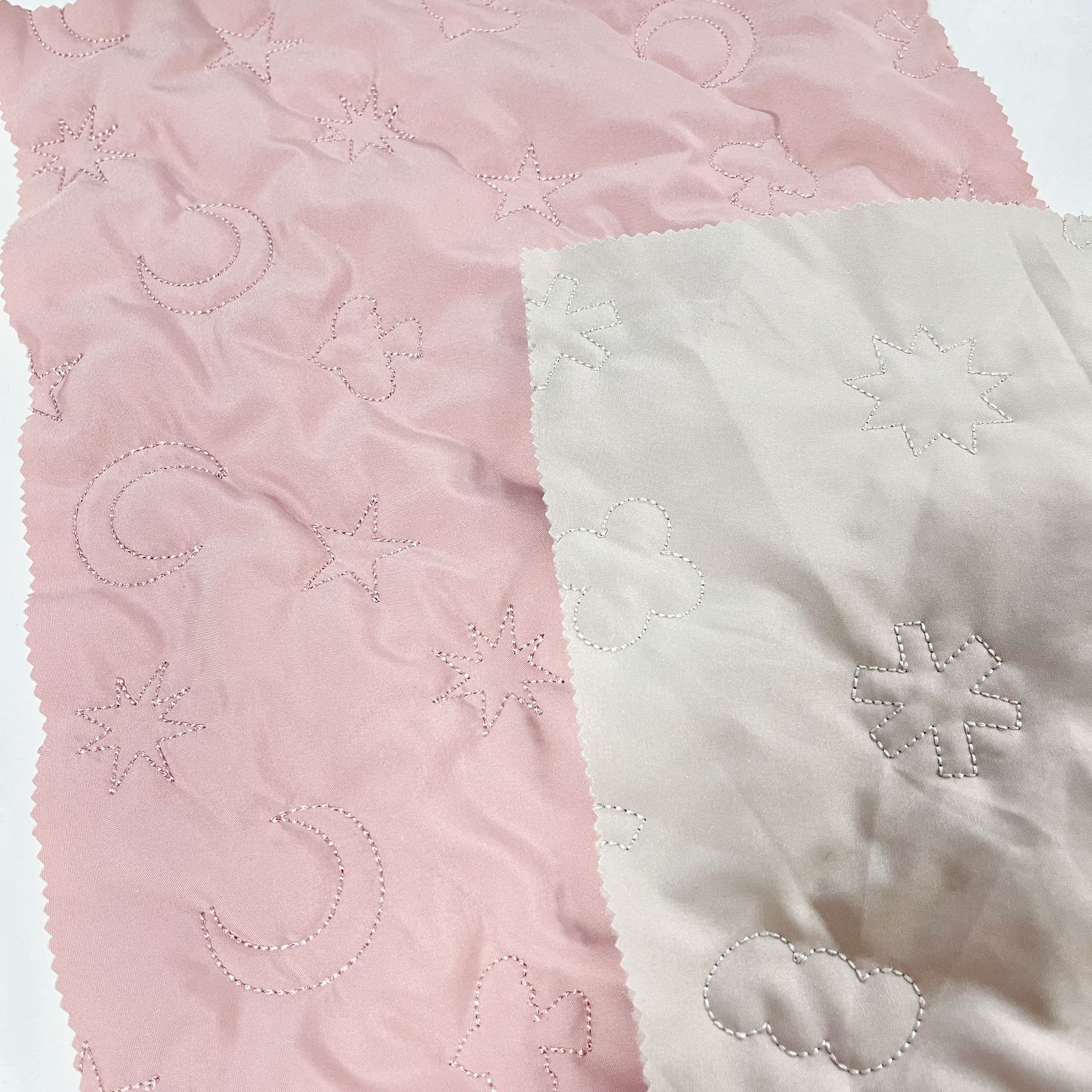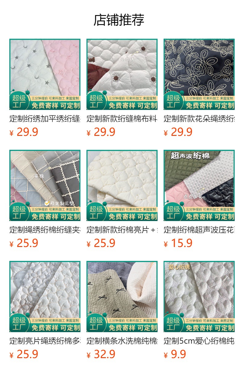 定做平绣绗缝夹棉包面料衍缝棉布料绣花钱包化妆包服装面料刺绣布
