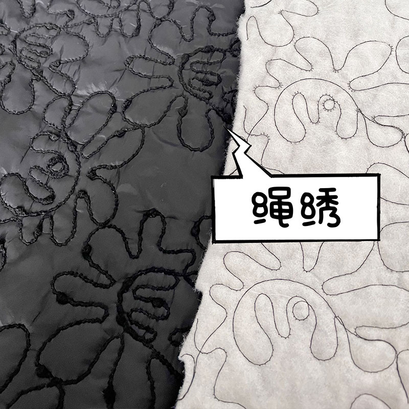 定制绳绣绗棉料绣花布绗缝夹棉包面料棉服裙子设计师面料立体绣花