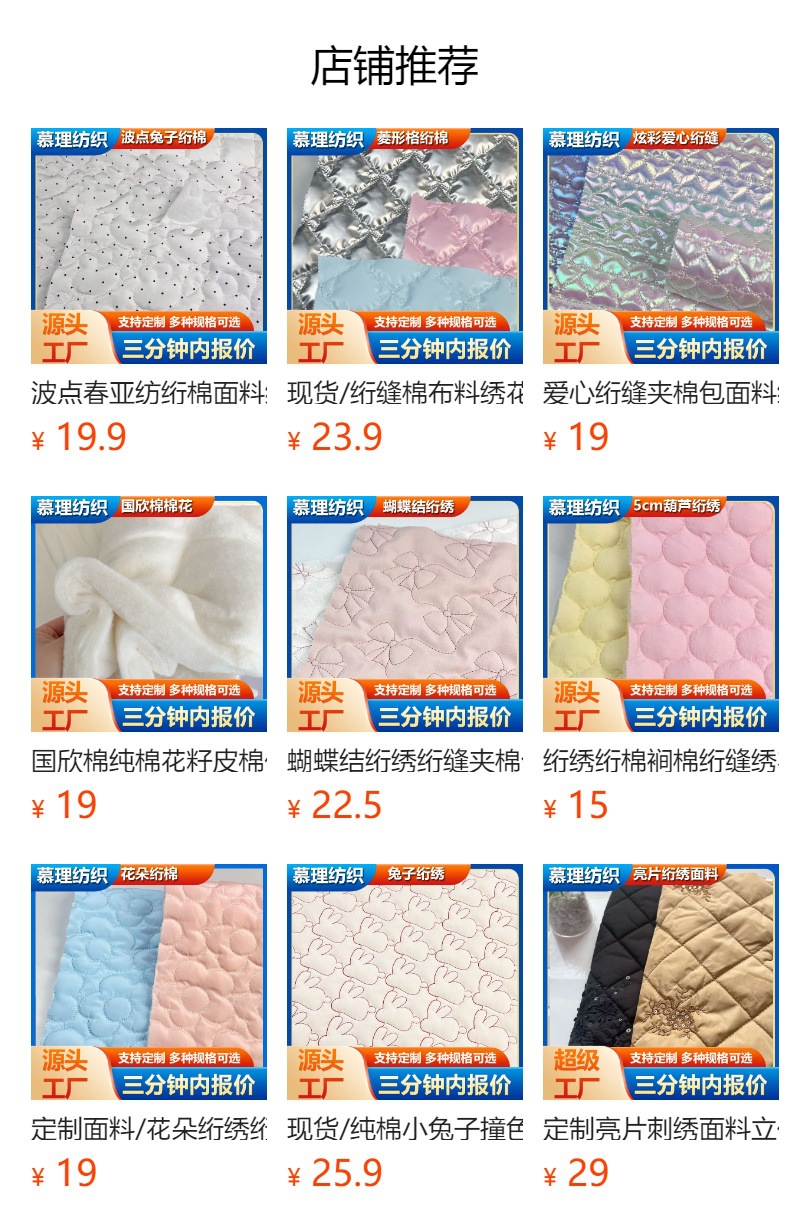 牛仔绗缝面料夹棉刺绣布棉服包包面料夹棉布料v形沙发垫绣花布