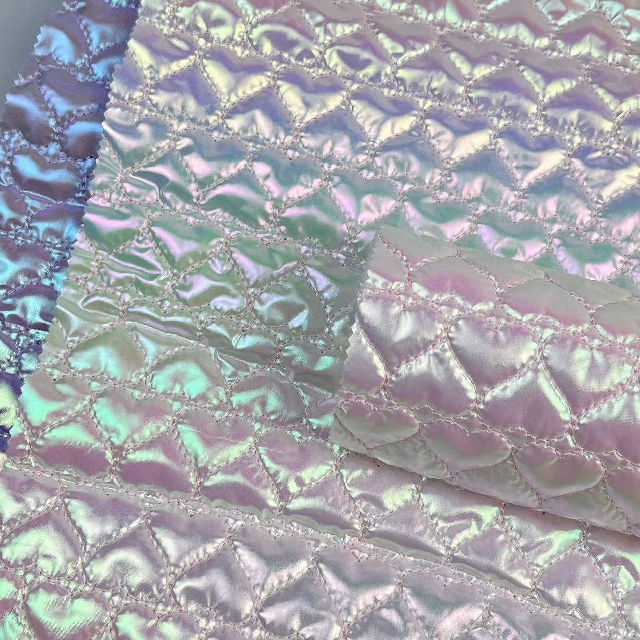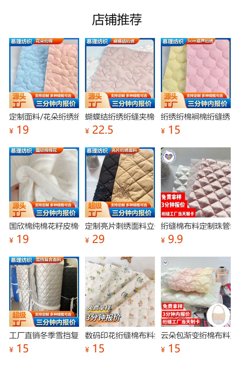 • 爱心绗缝夹棉包面料绣花布衍缝绗棉化妆包韩系笔袋面料支持定制