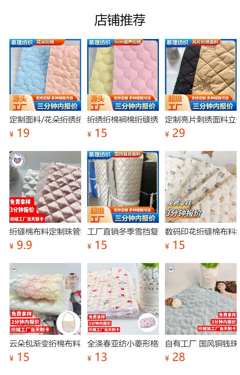 蝴蝶结绗绣绗缝夹棉包面料绗棉绣花面料箱包衣服布衍缝棉布料
