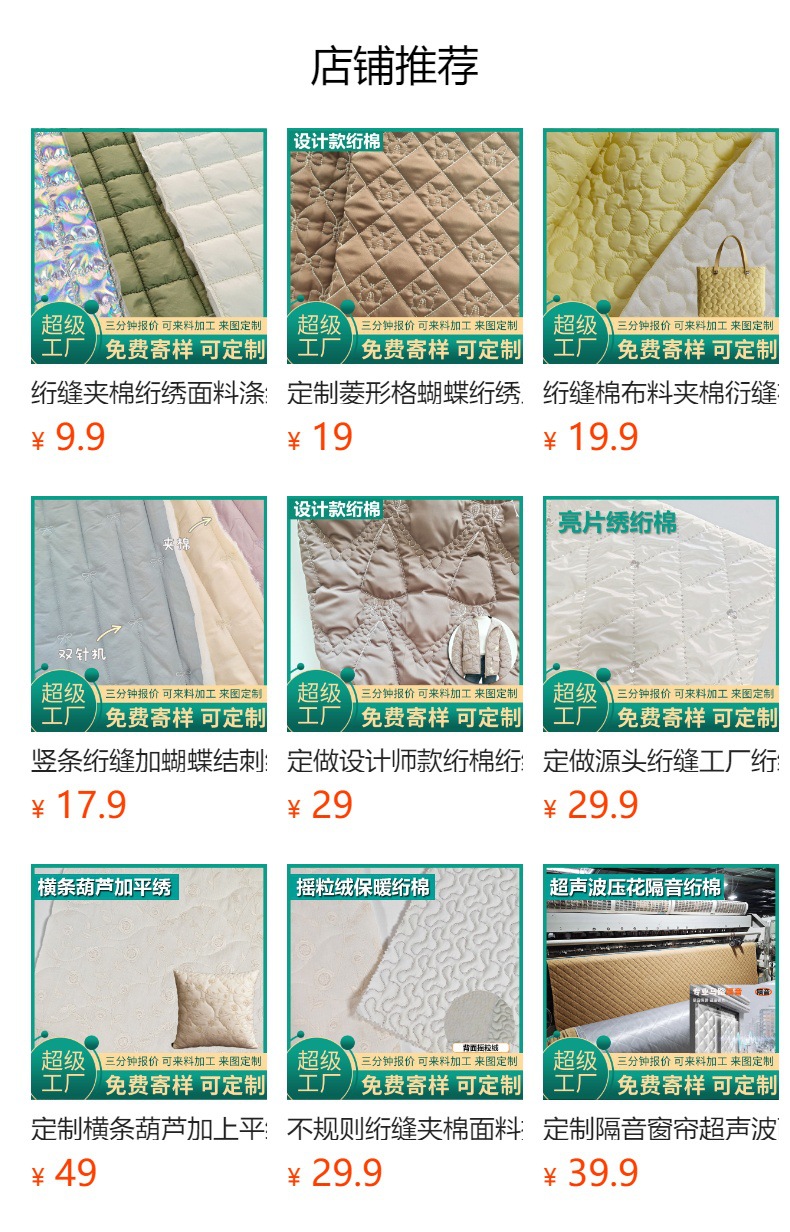 绗缝棉布料衍缝绗棉布料羽绒服面料箱包夹棉布云朵包棉服内胆童装