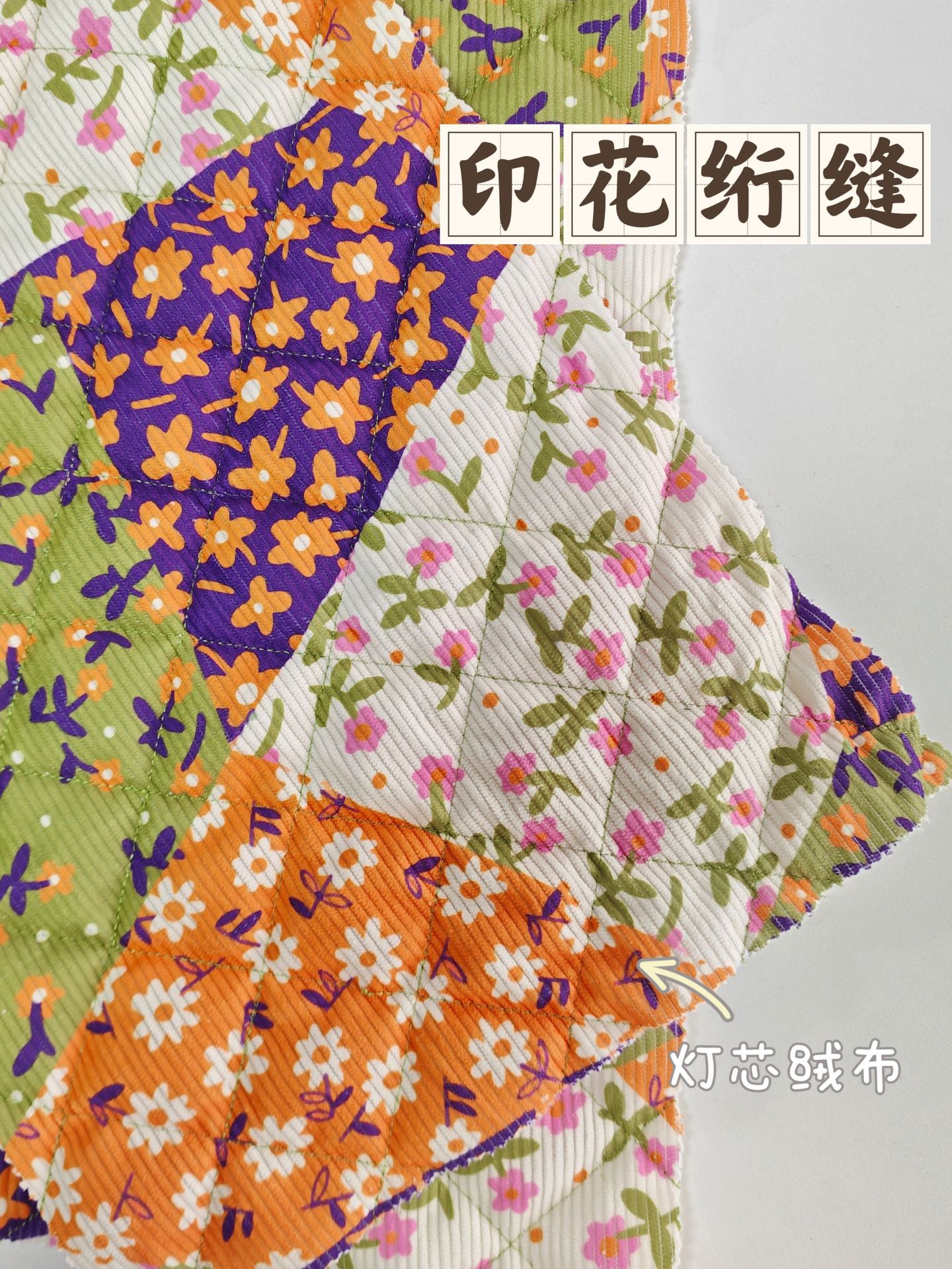 定制秋冬新款布料印花绗棉布料可爱手作绗棉内胆菱形格绗绣夹棉布