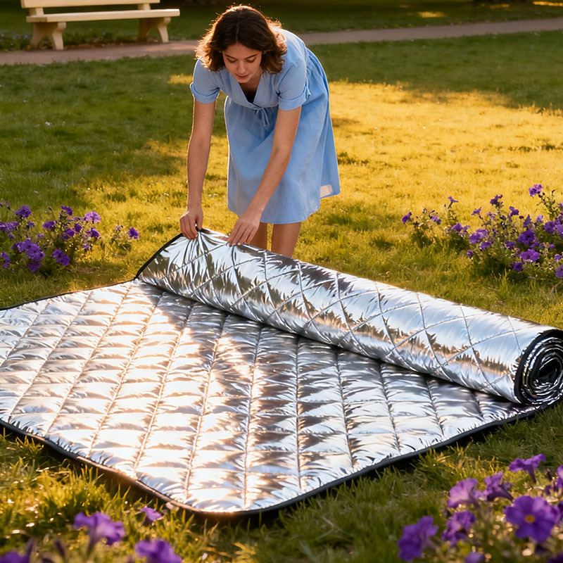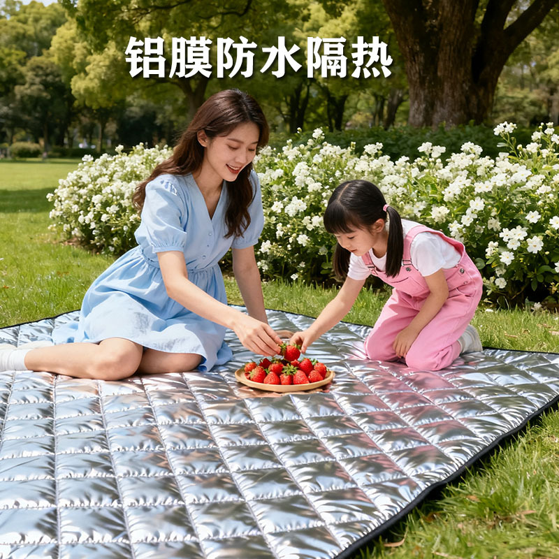 源头工厂 铝膜野餐垫超声波压花夹棉面料绗棉面料防潮垫户外布料