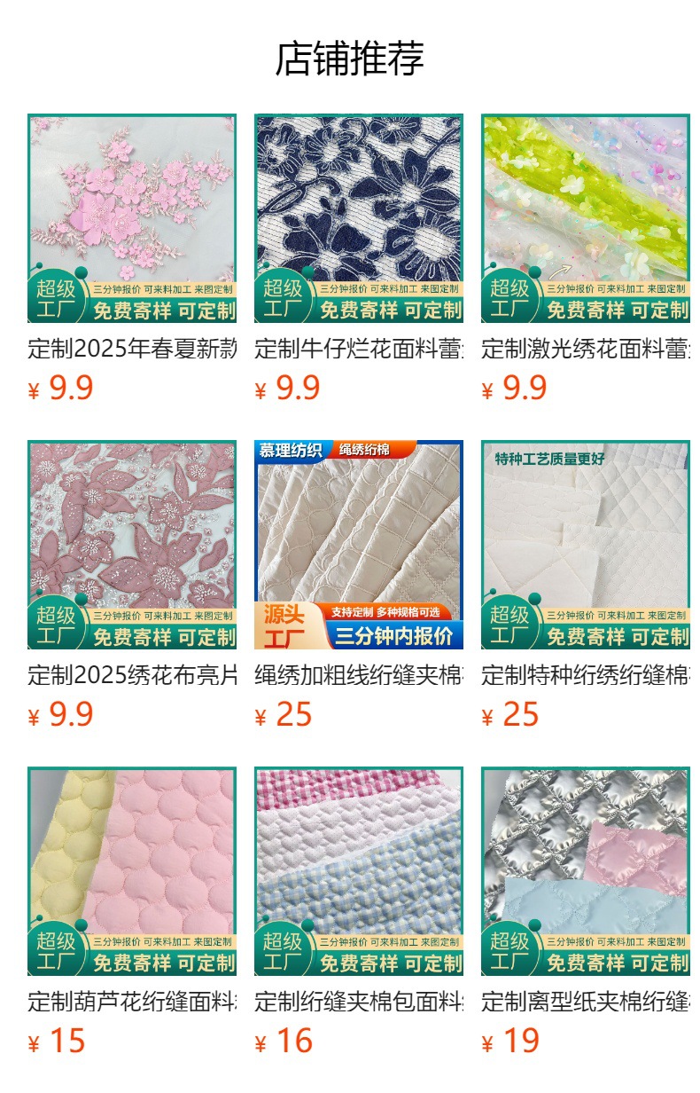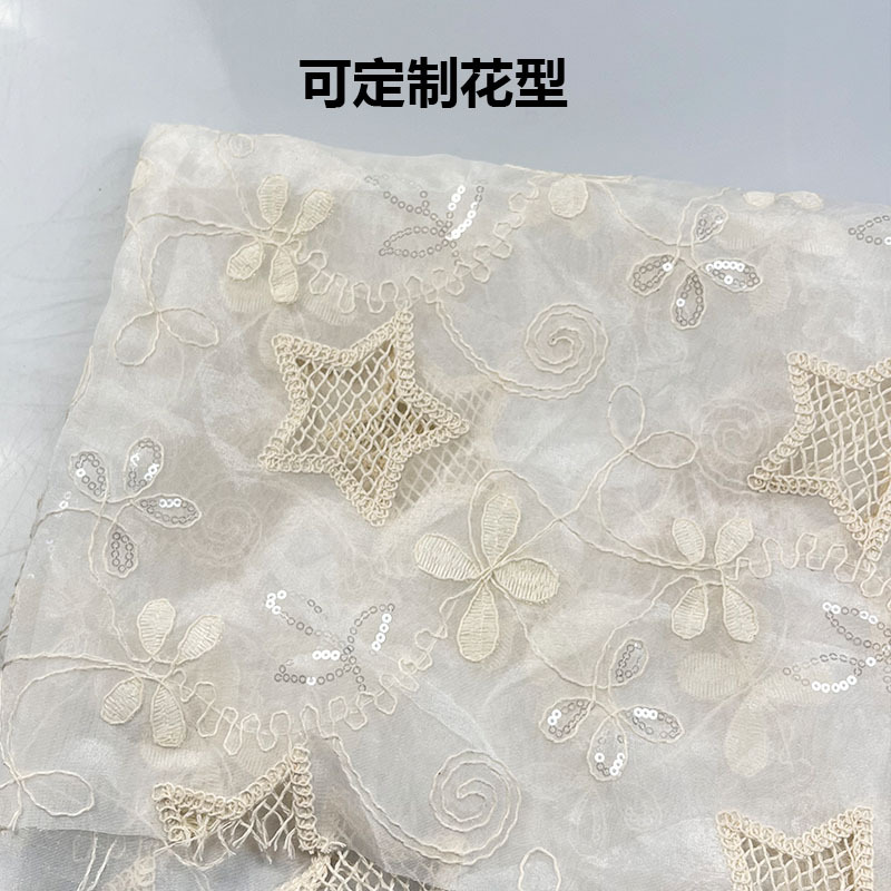 定制绣花布打孔绣亮片绣连衣裙纯棉刺绣提花面料绣花加工源头工厂