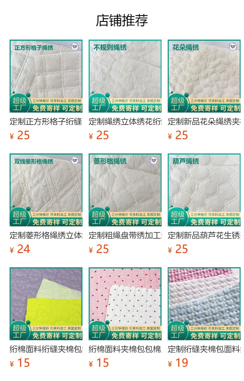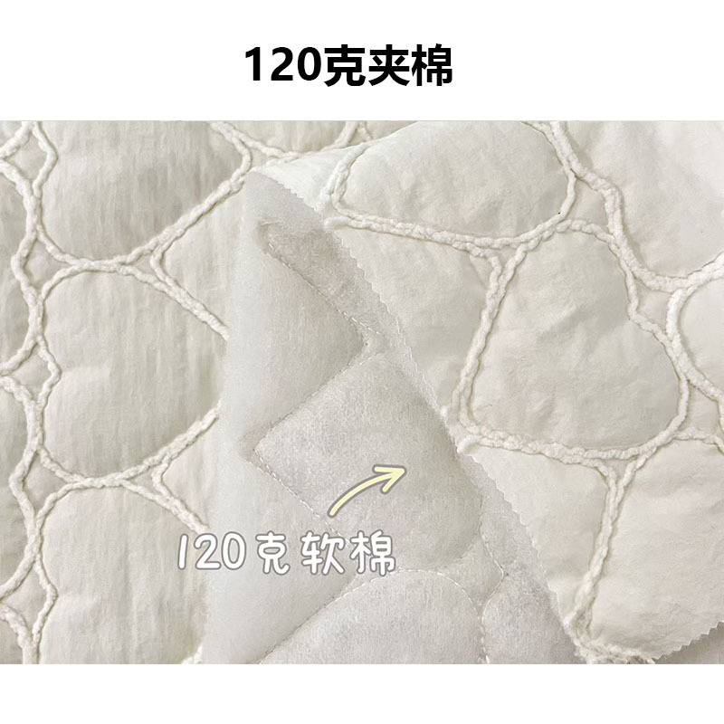 • 定制爱心绗棉绳绣粗线绣花布韩系ins风格面料云朵包服装家纺夹克
