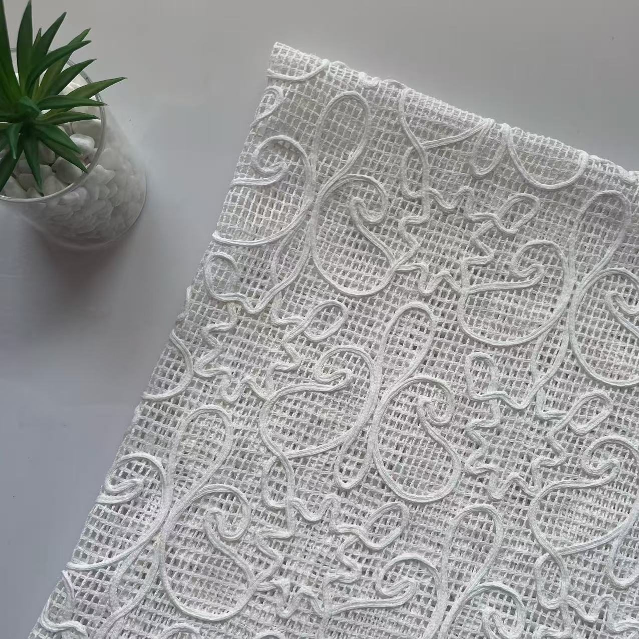 • 定制三合一盘带绣勾立体绣网布面料沙发罩家纺布料蕾丝镂空 花朵