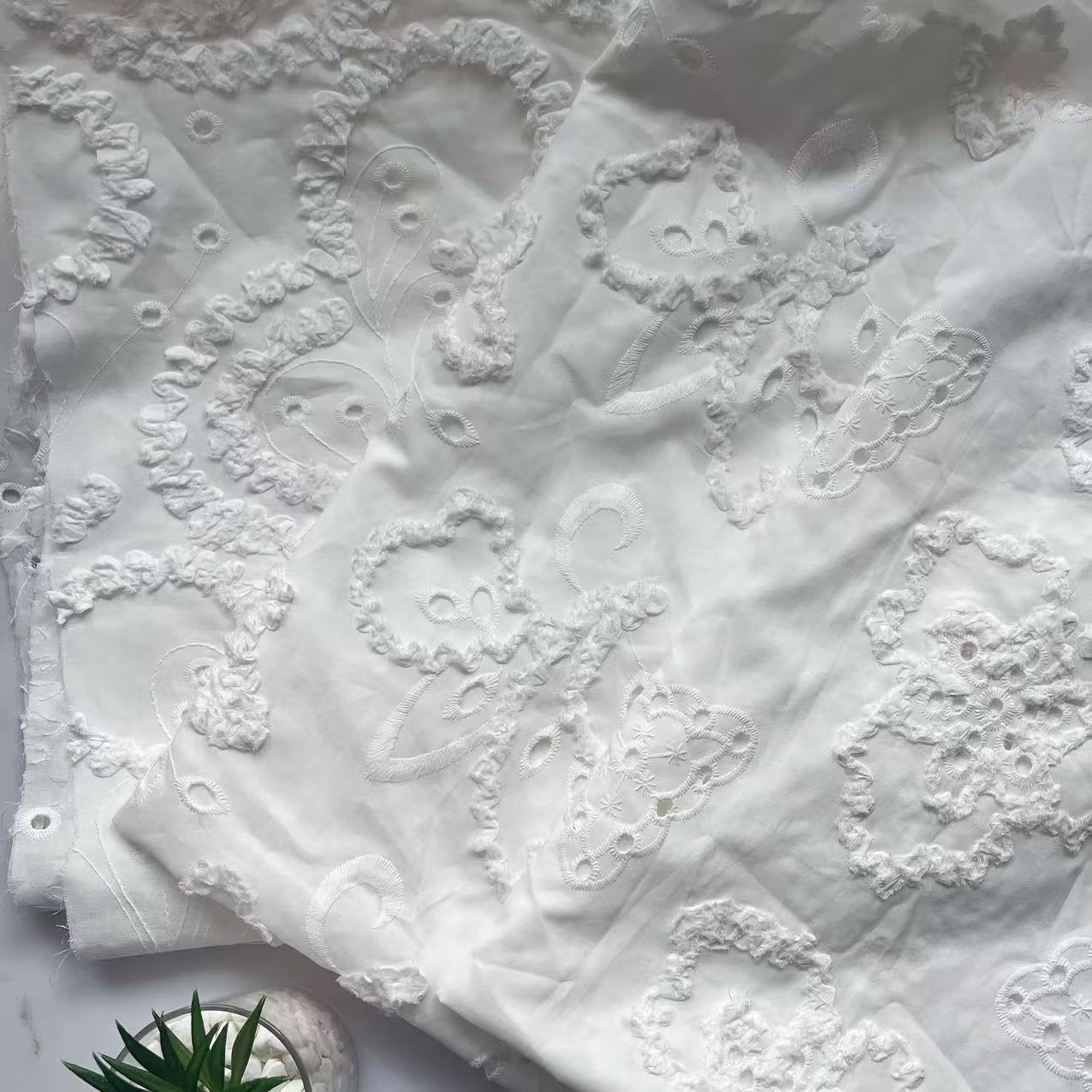 定制盘带绣绳绣立体镂空连衣裙设计师刺绣面料肌理时装布料家纺