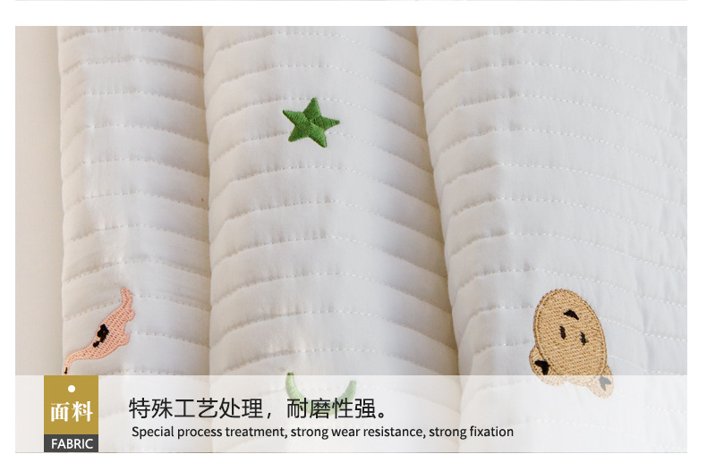 纯棉刺绣绗棉羽绒服面料布横条夹棉布小熊全棉加厚绗绣绗缝面料