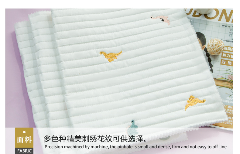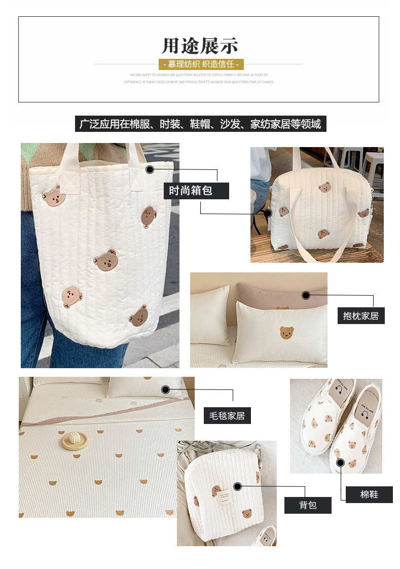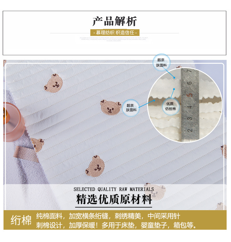 • 纯棉刺绣绗棉羽绒服面料布横条夹棉布小熊全棉加厚绗绣绗缝面料