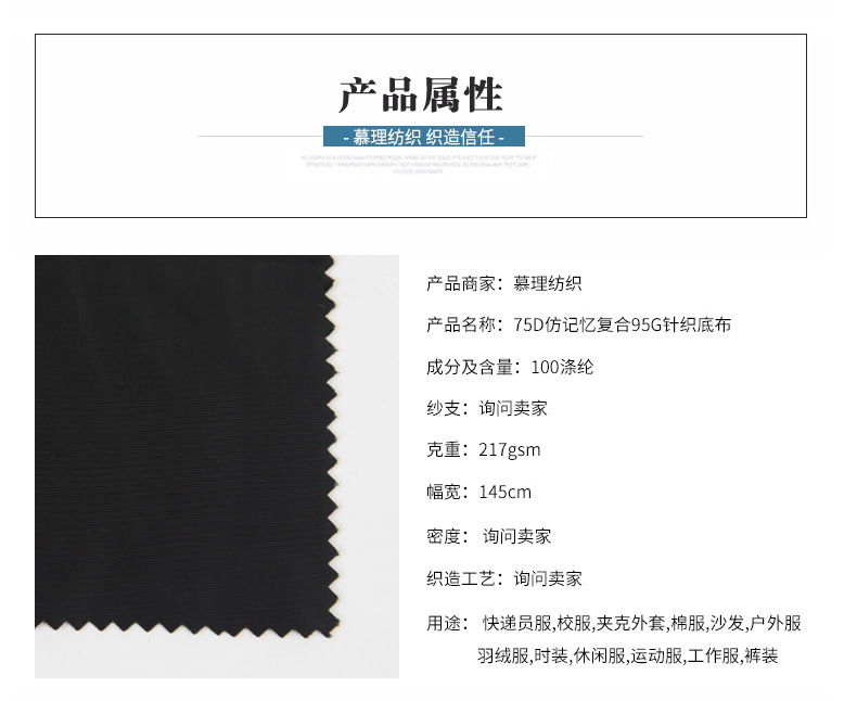 • 75D仿记忆复合面料 95g针织底布tpu面料 棉衣冲锋衣面料