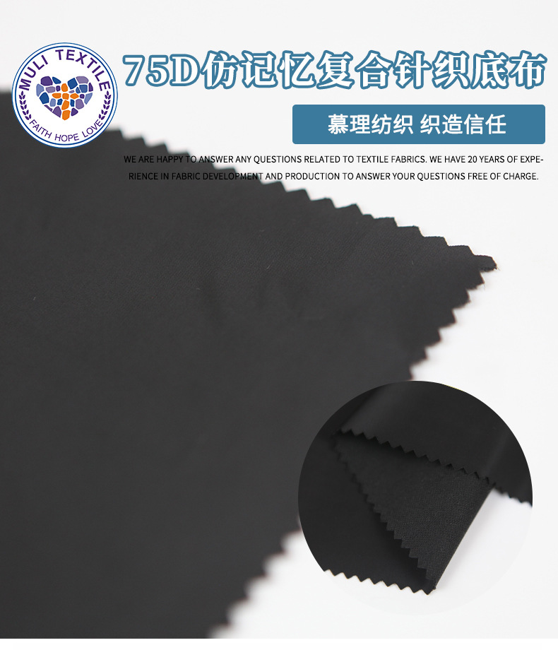 75D仿记忆复合面料 95g针织底布tpu面料 棉衣冲锋衣面料