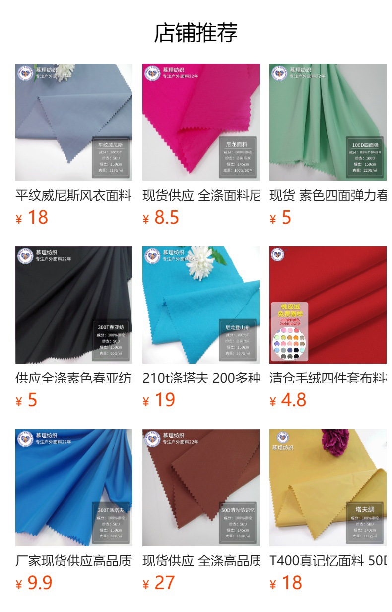 210t涤塔夫素色染色西装羽绒服防晒服防水平纹里布雨伞