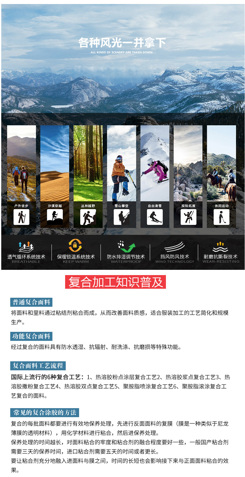 • 现货厂家直供格中点复合透明膜防水透气冲锋衣羽绒服户外服装用品