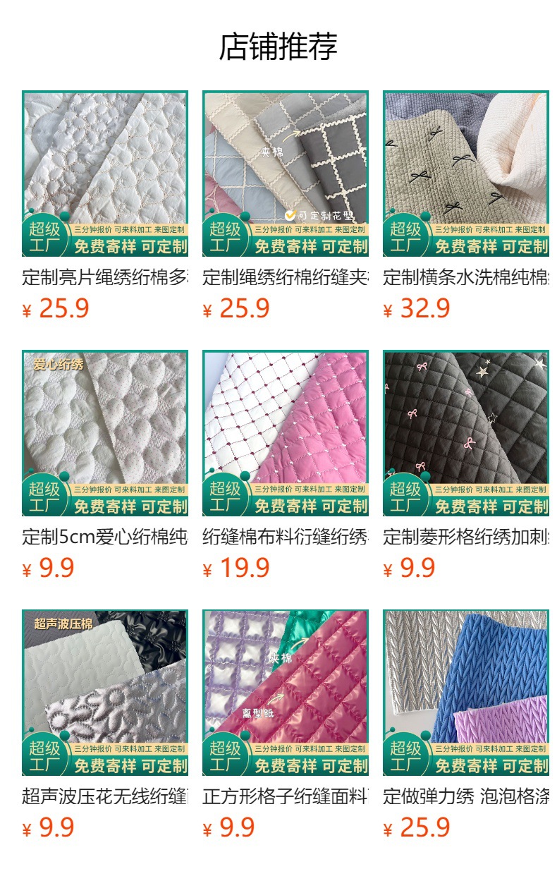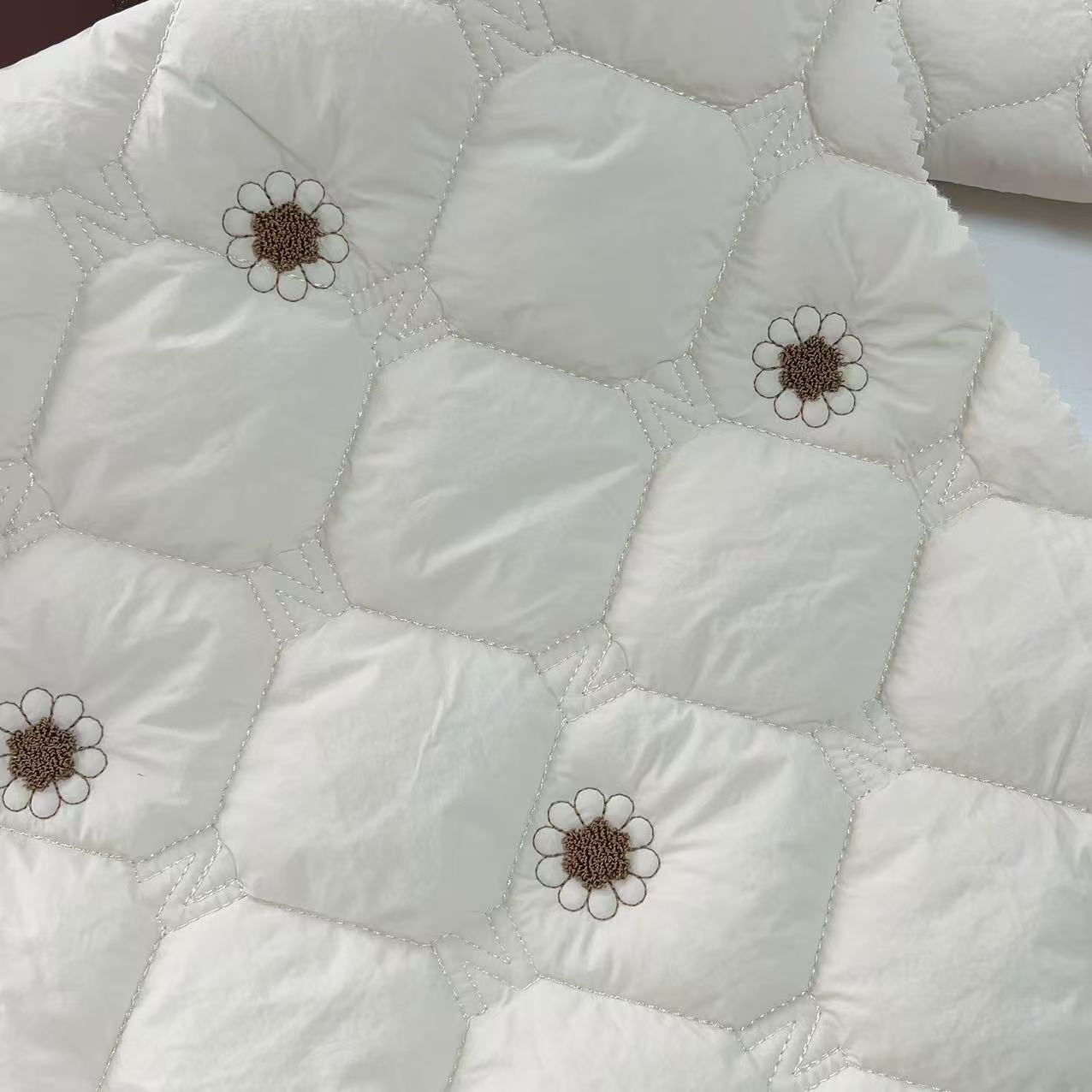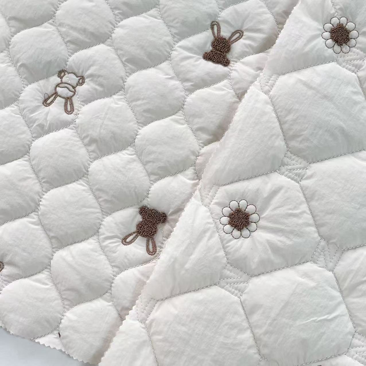 定制新款绗缝棉布料毛巾绣绗棉立体绣花刺绣夹棉布衍缝包包童装布